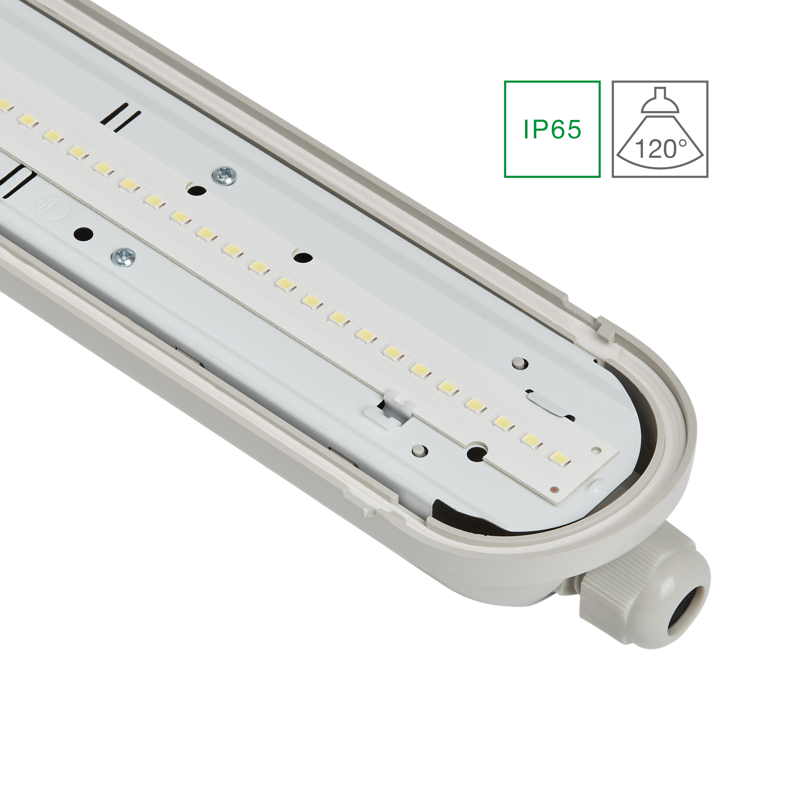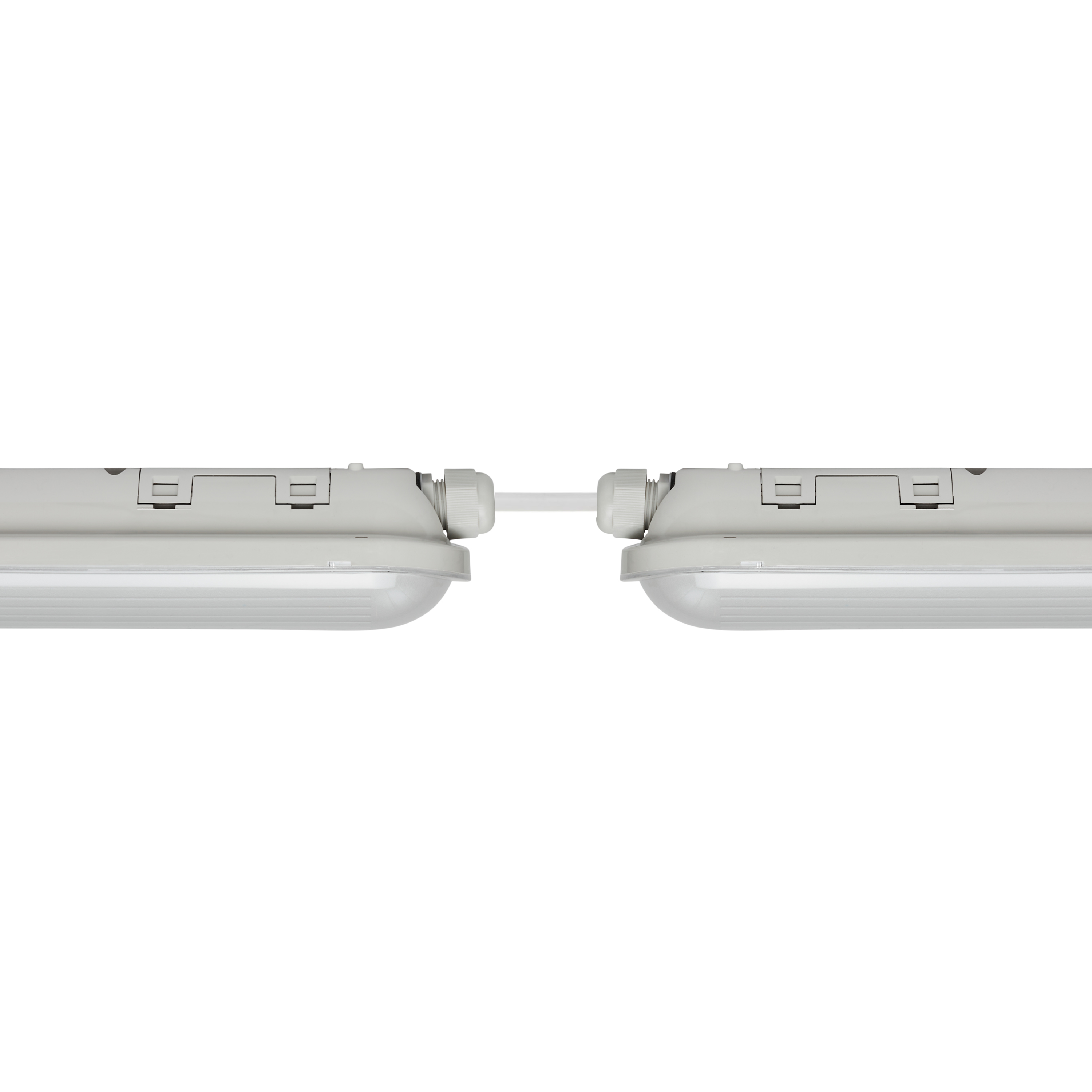 Diese hochwertige Industrie-Feuchtraumleuchte in weiß passt mit ihrem schlichten Design wunderbar in jeden Raum. Sie ist mit einer Durchgangsverdrahtung ausgestattet, so dass Sie beliebig viele Leuchten aneinander reihen können.