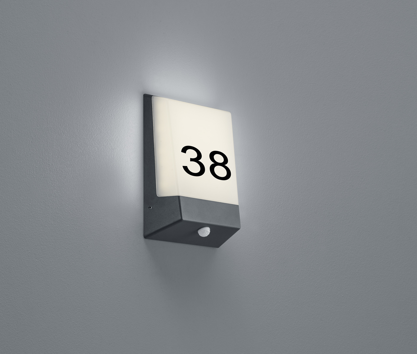 Modern und Funktional - die Wandleuchte KASAI mit Hausnummernset setzt einen besonderen Akzent in Ihrem Außenbereich. Das schlichte und zugleich elegante Design wird durch das hochwertige, anthrazitfarbene Aluminiumgehäuse abgerundet. Das Licht wird durch weißes Kunststoff gefiltert und versorgt den Außenbereich optimal mit einer angenehmen Lichtintensität. Durch den integrierten Dämmerungssensor schaltet sich die Leuchte bei eintretender Dämmerung automatisch ein, sodass die Sichtbarkeit der Hausnummer zu jeder Tages- und Nachtzeit gewährleistet ist. Die KASAI hat eine IP65 Klassifikation und ist somit problemlos im Außenbereich einsetzbar.