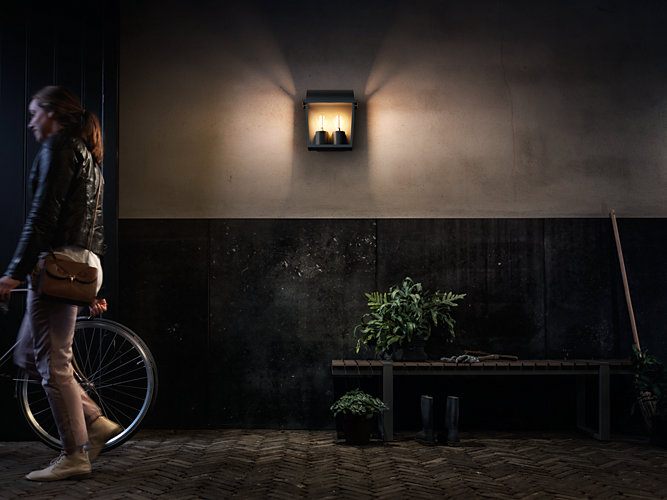 Für alle, die es klassisch mögen: Wandleuchte Harvest aus der Philips Lighting myGarden Serie ist aus schwarzem Aluminium und hochwertigen synthetischen Werkstoffen hergestellt und dank IP44-Schutz optimal für den Einsatz im Außenbereich geeignet. Die traditionelle Gestaltung erinnert an eine Laterne und kann mit zwei Leuchtmitteln Ihrer Wahl vollendet werden. Gerade Filament-Leuchtmittel mit sichtbarem Glühfaden sorgen hier für authentische und besonders attraktive Effekte. Ob Sie ein klassisches Design für Ihren Garten gewählt haben oder trendigen Retro-Chic wünschen - Harvest ist die ideale Wahl.