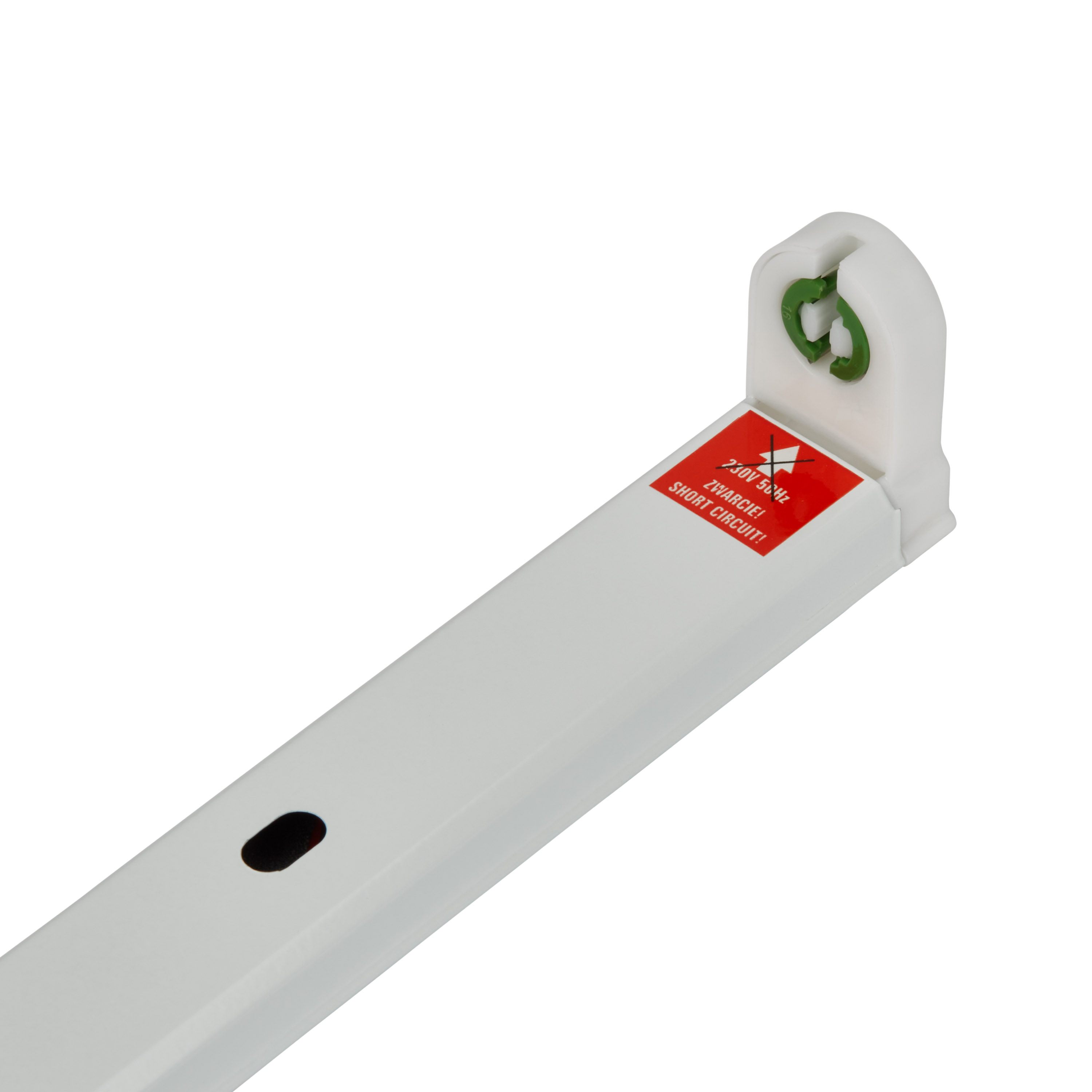 Die einfachste Fassung für LED Röhren. Keine besonderen Extras, eine Fassung welche einfach Ihren Zweck erfüllt und LED-Röhren verlässlich zum leuchten bringt. Dank der Kunststoffhalterung brauchen Sie keinen Nullleiter mit anzuschließen. Bitte achten Sie beim einsetzen der LED Röhren auf die richtige Einsatzrichtung. Durch kleine Metallklemmen ist die Montage extrem einfach und durch den unabhängigen Abstand der Metallclips können meist alte Bohrlöcher verwendet werden.